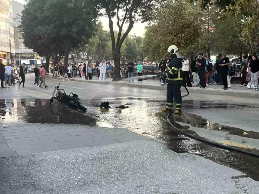 Olay, Aktekke Mahallesi Yalçın Caddesi’nde meydana geldi. Edinilen bilgiye nazaran, E.E. idaresindeki 34 SV 2376 plakalı motosiklette, halindeyken bilinmeyen bir sebeple yangın çıktı. Durumu fark eden E.E., motosikleti durdurarak uzaklaştı. Kısa müddette büyüyen yangın motosikleti sardı.