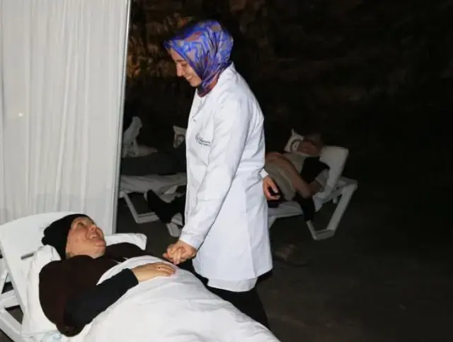 Tedavi süreciyle ilgili bilgi veren Uzm. Dr. Ali Özkurt ise, “Hastalarımızda çok bariz güzelleşmeler gözlemliyoruz. Teneffüs kapasitesi düşmüş hastalar bu tedavi sayesinde iki katına çıkarak olağan düzeylere ulaşıyor. Evvelce oksijene bağlı yaşayan, yürüyemeyen hastalar mağaraya geldiklerinde hissedilir biçimde düzeliyorlar” sözlerini kullandı.